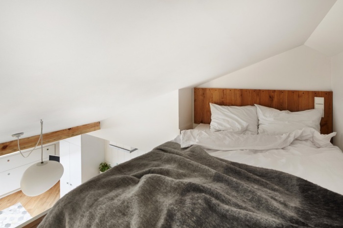 Căn hộ nhỏ xinh dưới đây của cặp vợ chồng trẻ nằm ở tầng gác mái với diện tích chỉ vỏn vẹn 19m2. Với khoảng không gian hạn chế như vậy, nhiều người thường sử dụng để bố trí nhà kho hay một căn phòng chức năng nào đó. Tuy nhiên, căn hộ gác mái này thì khác. Không gian thoáng sáng, hiện đại của nó cho phép cặp vợ chồng trẻ bài trí nội thất với đầy đủ chức năng phù hợp cho cuộc sống hàng ngày. Mỗi góc nhỏ đều được bài trí một cách tỉ mẩn giúp căn hộ nhìn từ bất cứ góc nào cũng đẹp miễn chê.